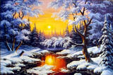Картина по номерам «Солнышко в морозном лесу» размером 40x50 см см. купить по выгодной цене 650 ₽ с доставкой по Москве и всей России.